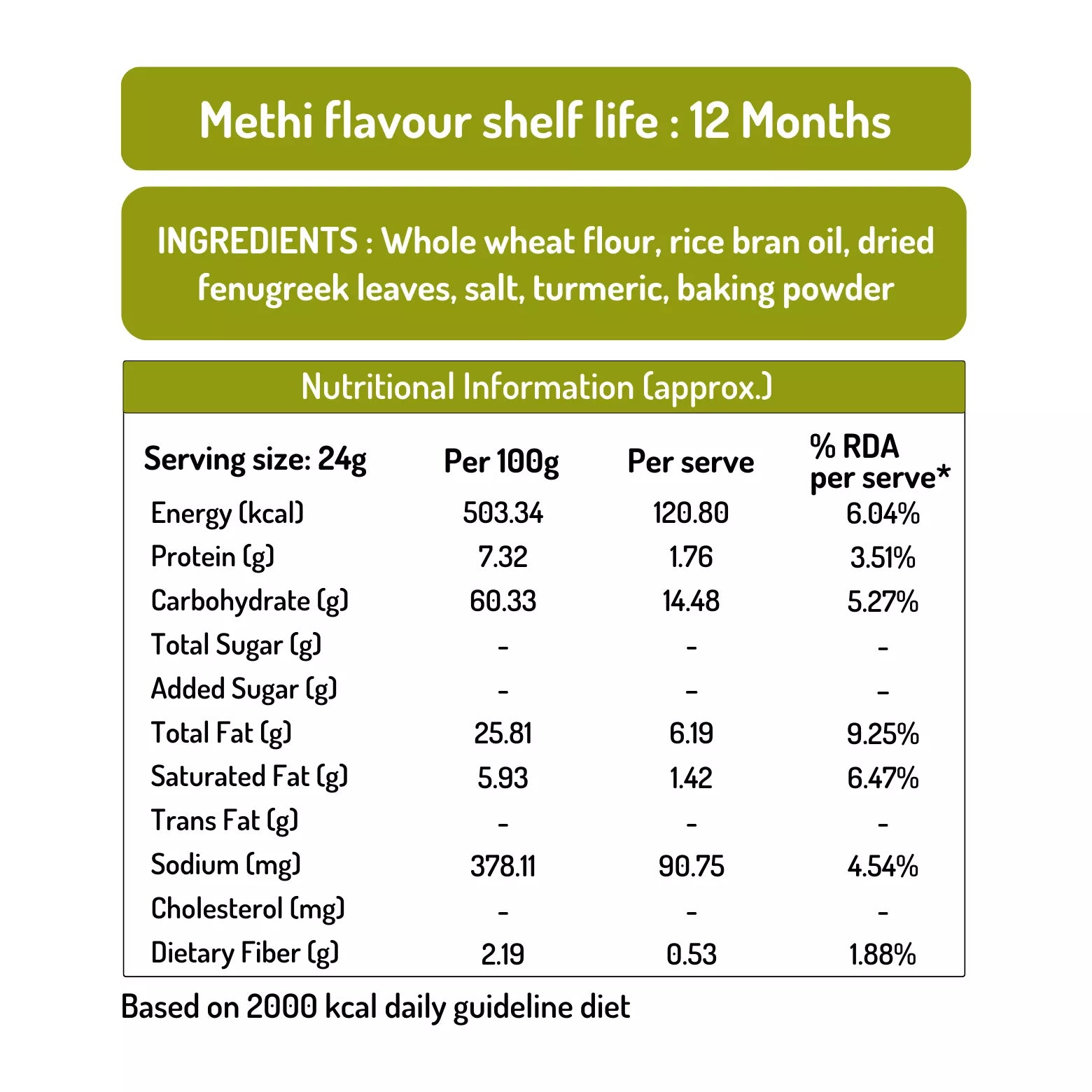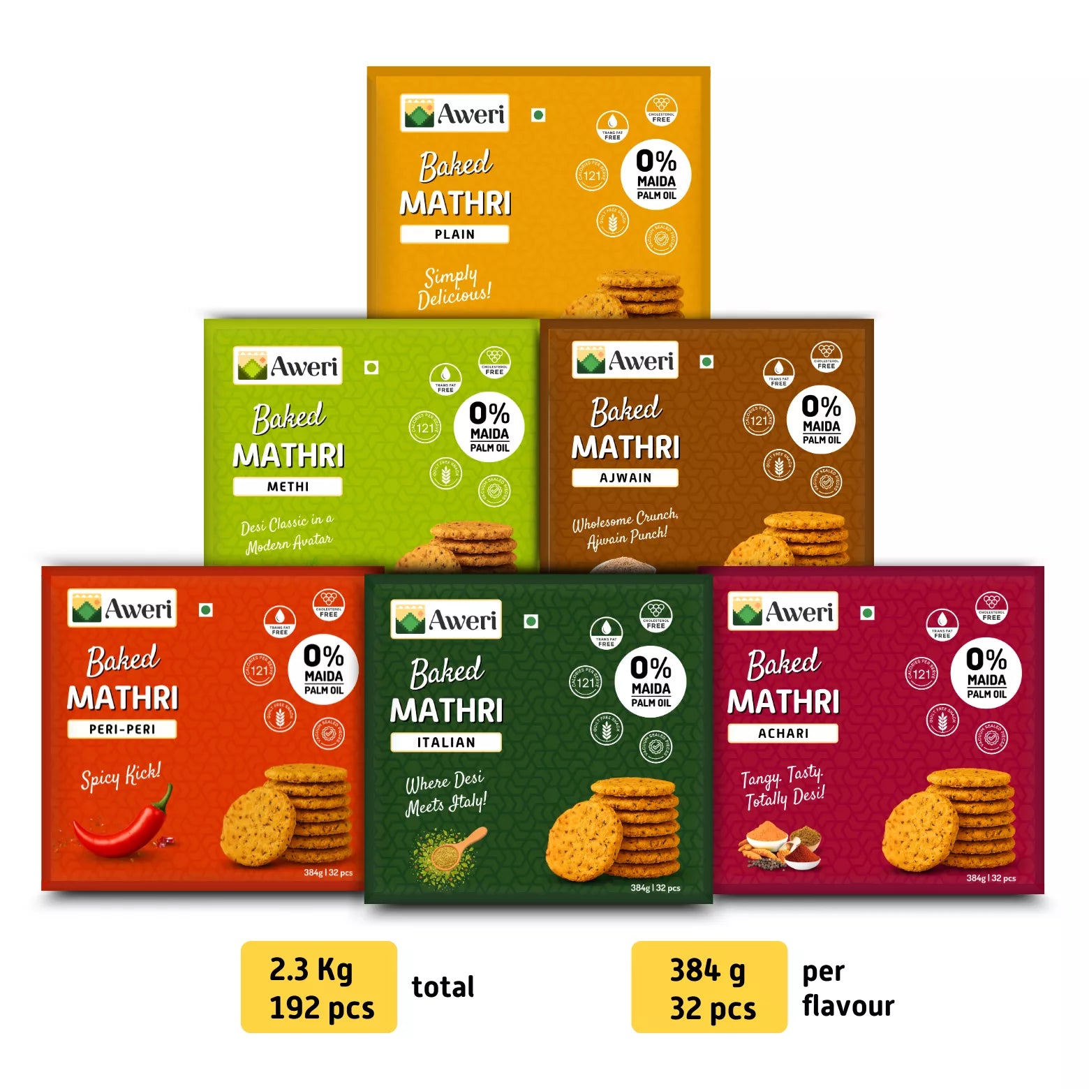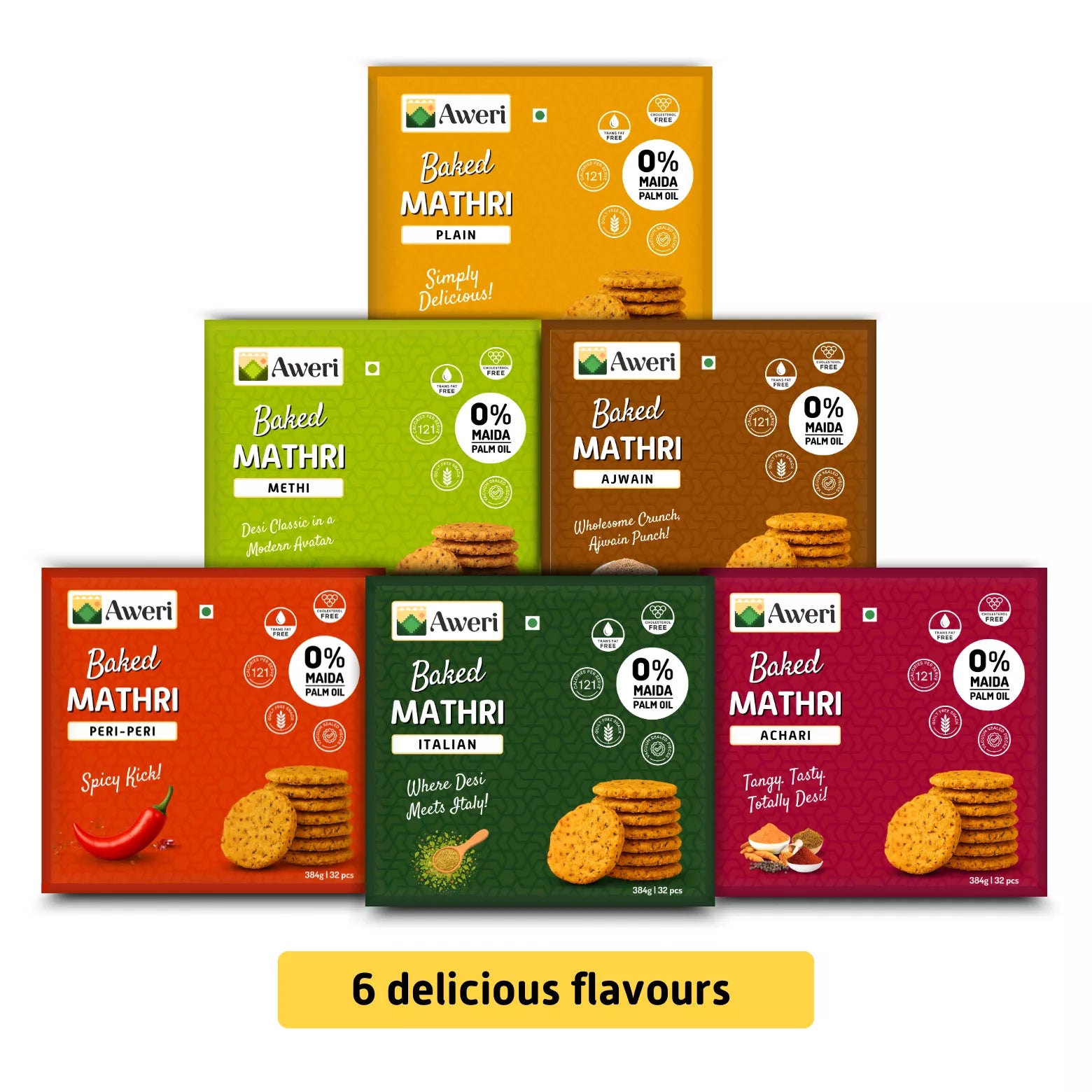 Looking for a snack that’s both delicious and healthy? Meet Aweri’s Baked Mathri – the perfect munching snack for your taste buds. Say goodbye to traditional mathris that are deep-fried in oil and hello to a crispy, a baked treat made with all wheat flour and sooji. With no refined flour and no frying, you can indulge in this guilt-free snack full of flavour.