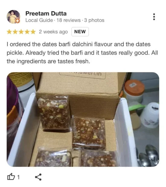 Our Dates Barfi Bite Combo is the perfect guilt-free indulgence for your everyday snacking needs. Packed with natural goodness and zero added sugar, these bites are not just delicious but also loaded with iron and fiber to keep you energized and nourished throughout the day.