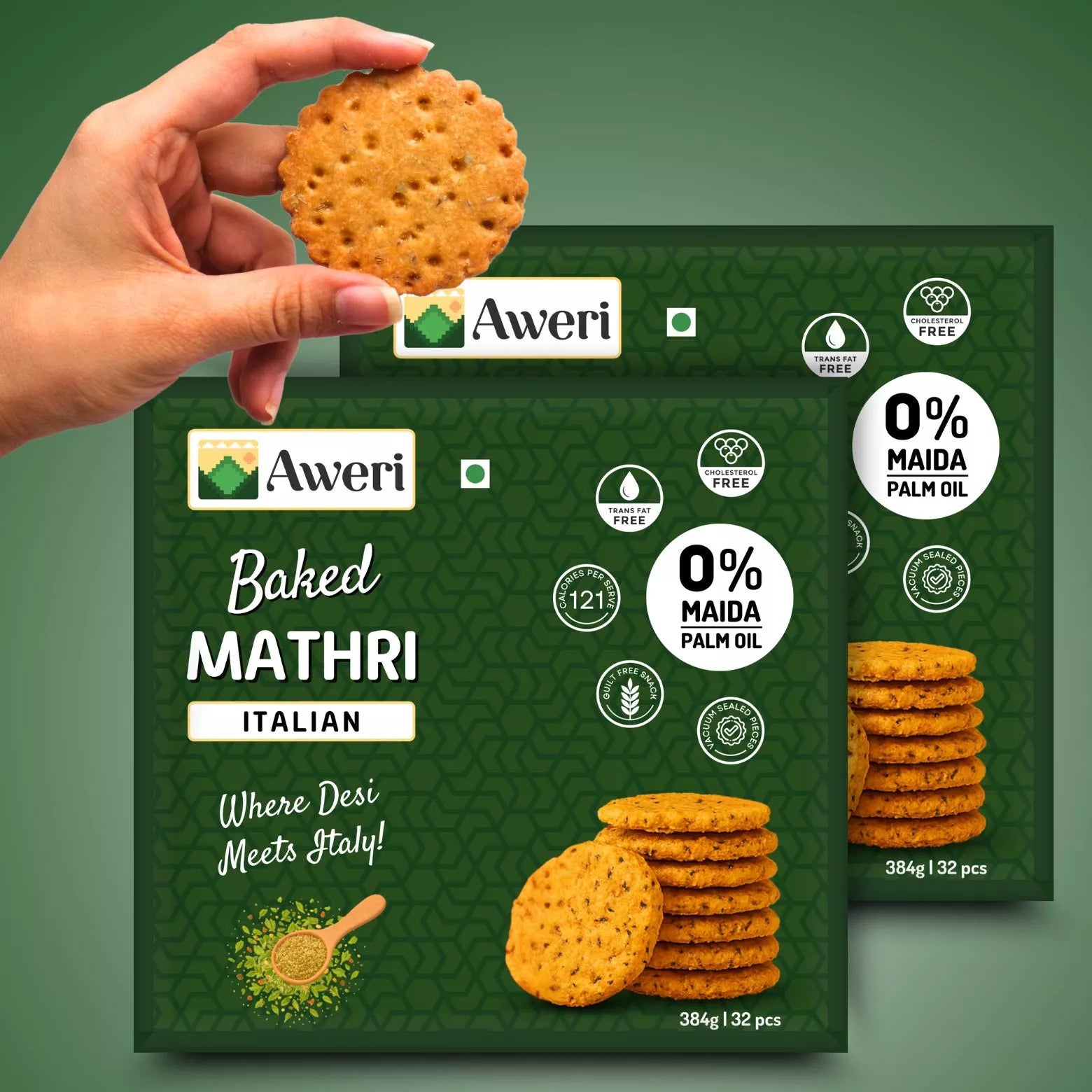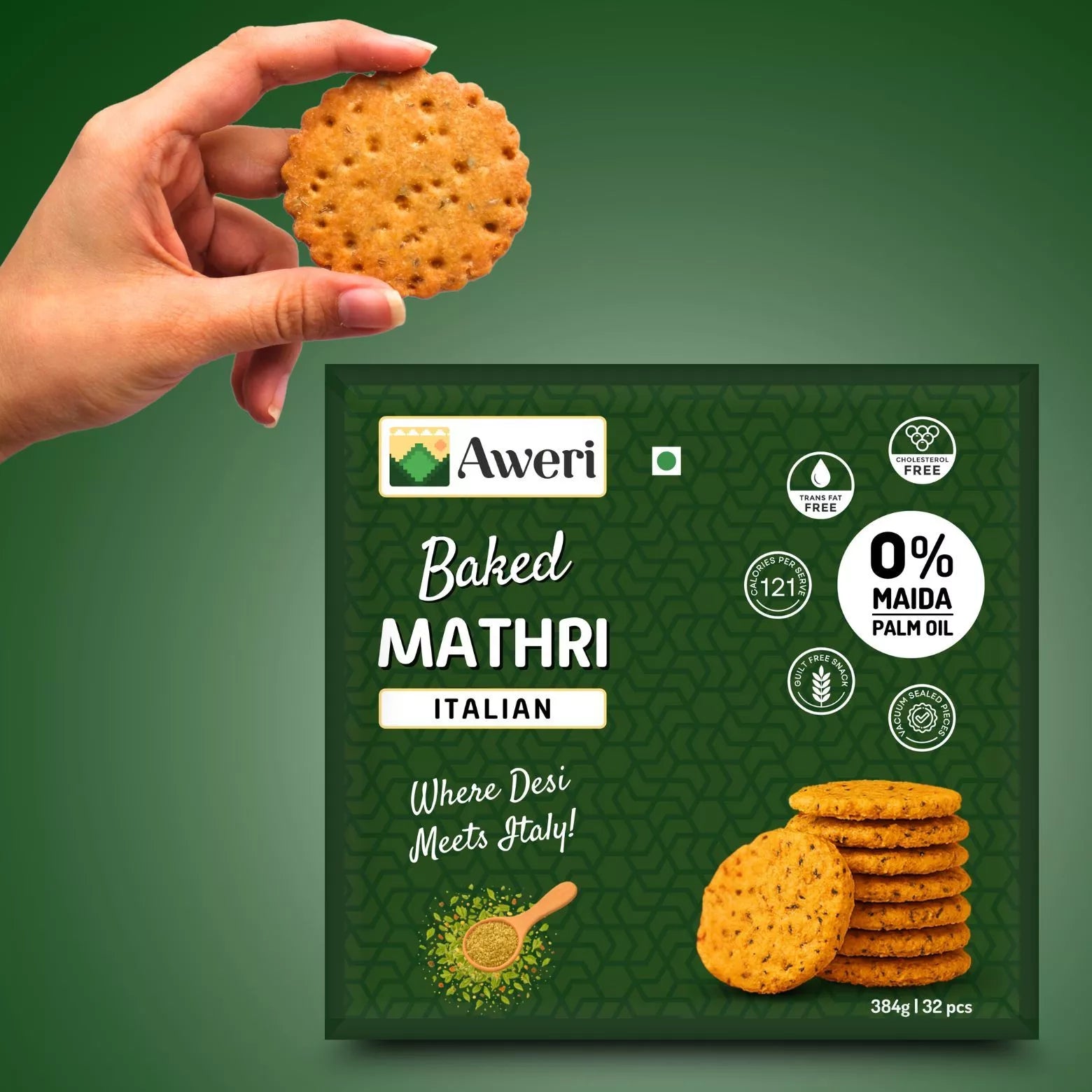 Looking for a snack that’s both delicious and healthy? Meet Aweri’s Baked Mathri in Italian herbs flavour. You’ll love this blend of tradition with a twist. Say goodbye to traditional mathris that are deep-fried in oil and hello to a crispy, a baked treat made with all wheat flour and sooji. With no refined flour and no frying, you can indulge in this guilt-free snack without any worry.