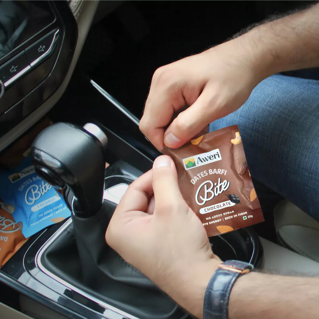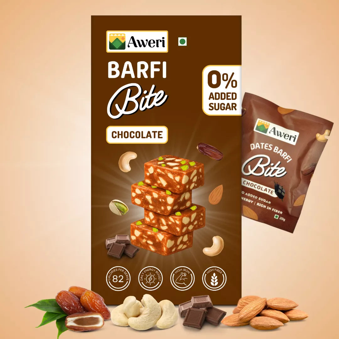 This box contains 20g delicious dates barfi pouches of chocolate flavours.