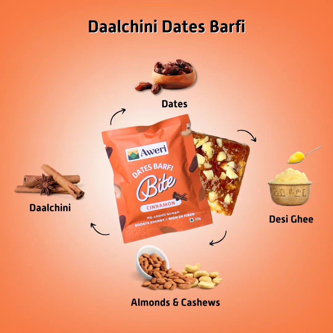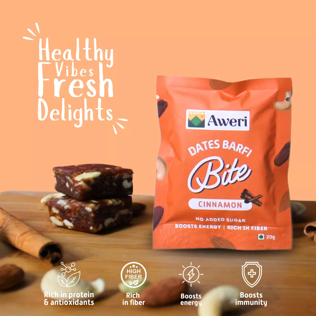 This box contains 20g delicious dates barfi pouches of daalchini flavours.