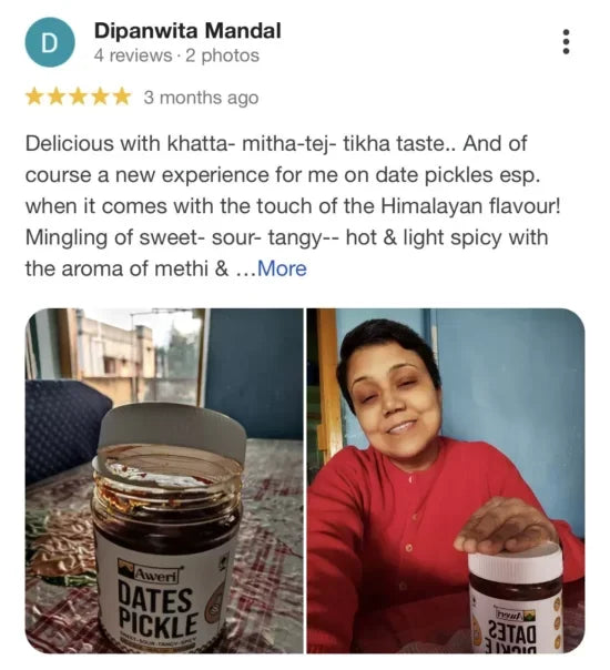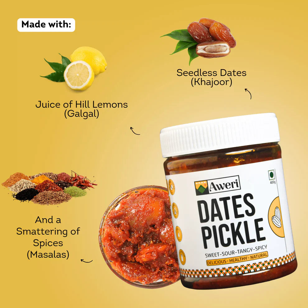 We've all eaten different kinds of pickle, from homemade to store bought, from mango to garlic, but this is a family Himachali recipe that uses dates and the juice of Hill Lemons to deliver a fantastic pickle! - No Added Sugar