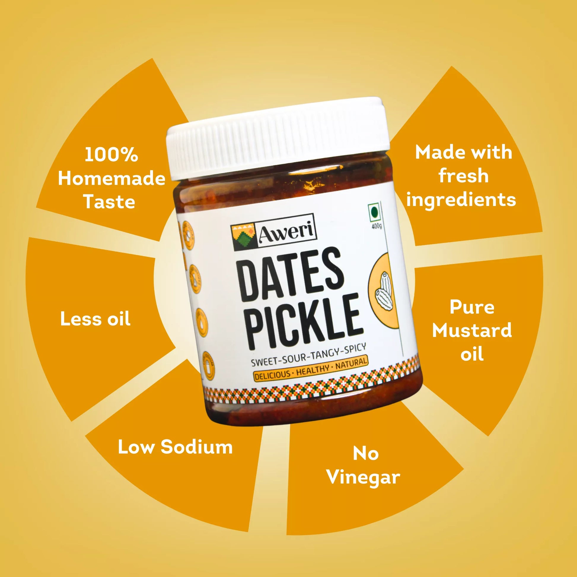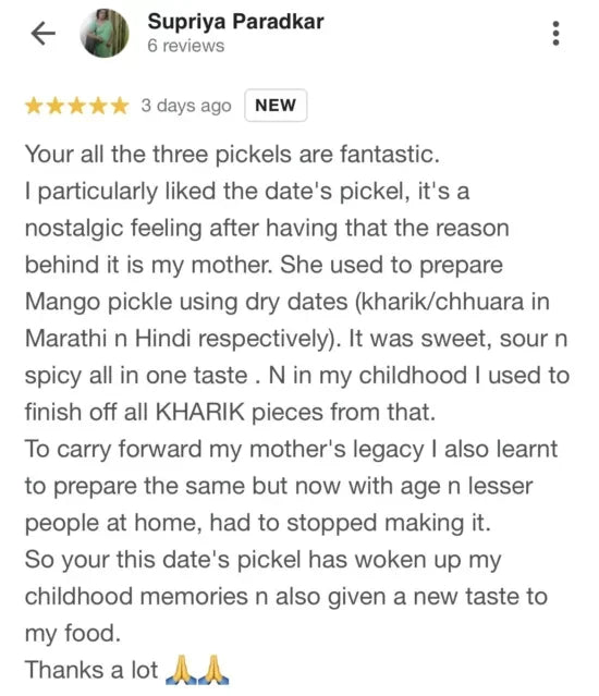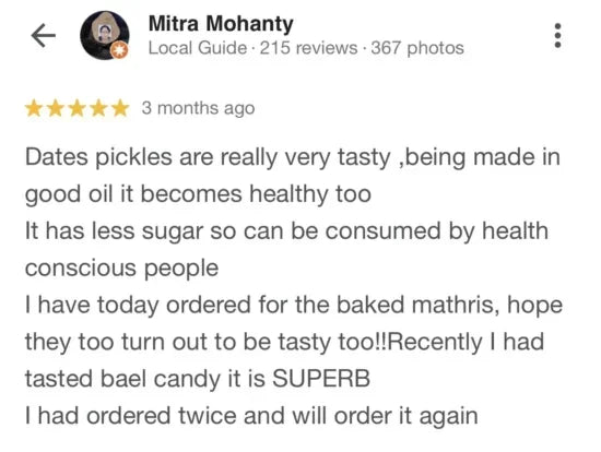 Made in small batches, our recipe uses the natural goodness of mustard oil for preservation. In fact, our dates pickle gets yummier with age! - No Cholesterol or Trans Fat
