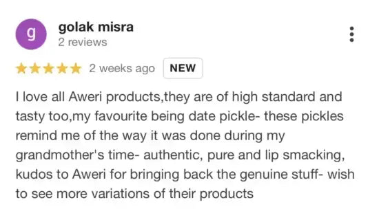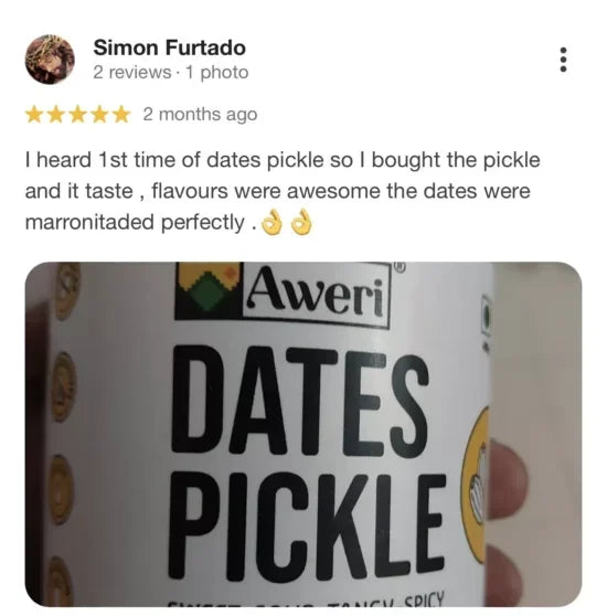 The pickle tastes sweet-sour-tangy with a kick of spice and pairs well with paranthas, khichdi, curd rice, matthi and all regular Indian meals. You’ll definitely find yourself reaching out for this jar because our dates pickle makes every meal Aweri special meal!