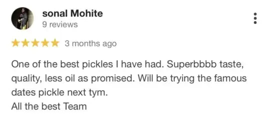 Our pickle is home-made, has no added sugar, has no added preservatives, is made with less oil, has low sodium, is a natural and healthy product.