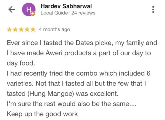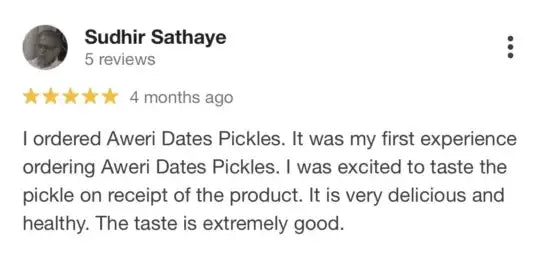 Most store-bought pickles have a host of ingredients, one of them being sugar. Aweri Dates Pickle has none of that and this makes it a great choice for people who have diabetes. - No Preservatives