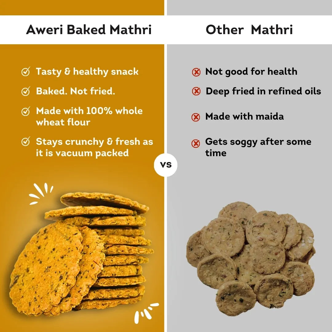 Looking for a snack that’s both delicious and healthy? Meet Aweri’s Baked Mathri – the perfect munching snack for your taste buds. Say goodbye to traditional mathris that are deep-fried in oil and hello to a crispy, a baked treat made with all wheat flour and sooji. With no refined flour and no frying, you can indulge in this guilt-free snack without any worry.